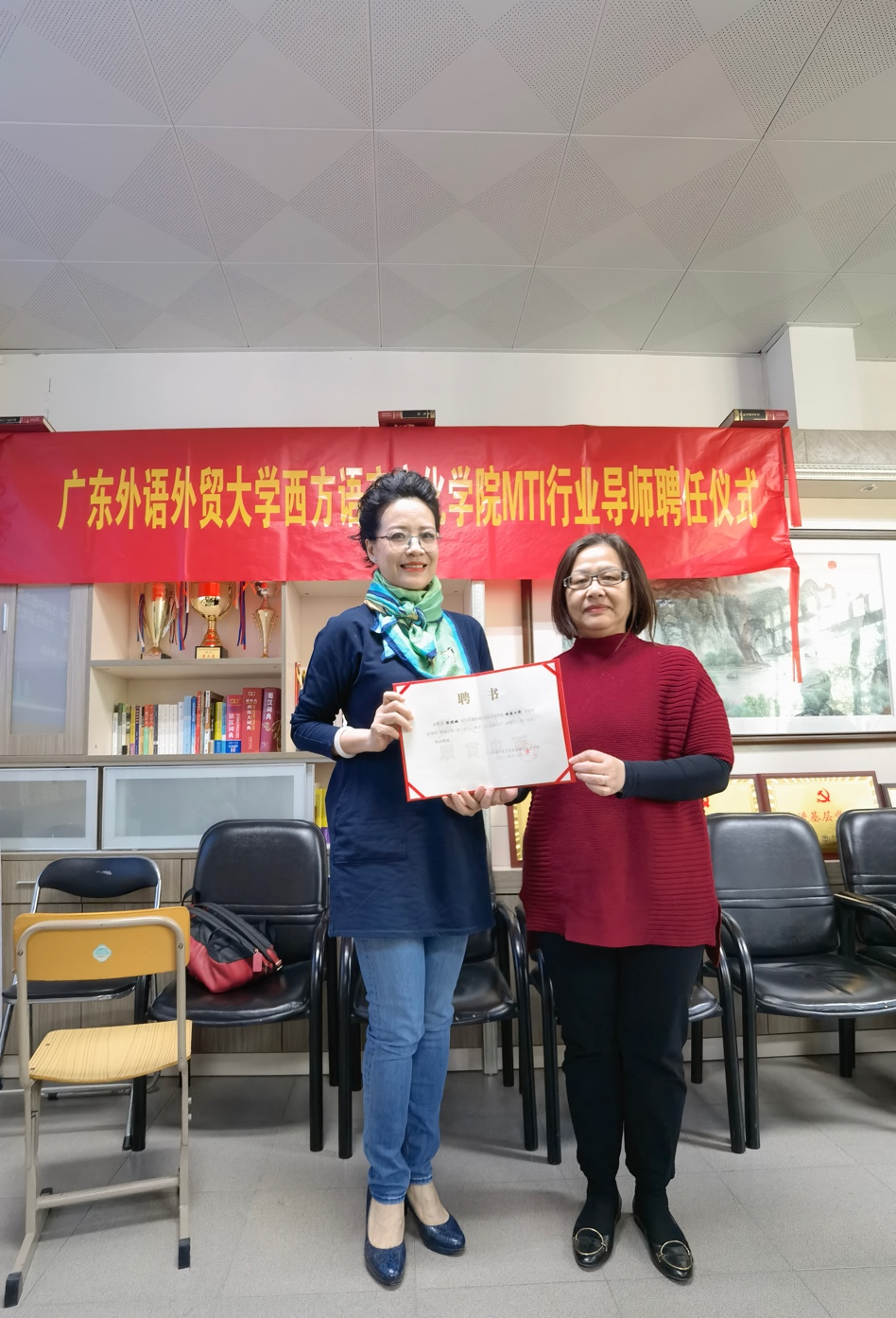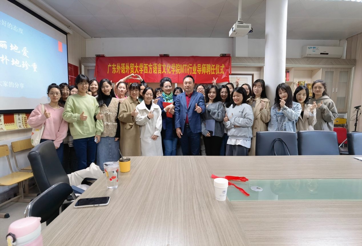院长杨可出席讲座并为陈晓琳颁发了MTI行业导师聘书,诚挚欢迎陈晓琳老师加盟广外西语行业导师团队,助力培养更多会讲中国故事的年轻人。