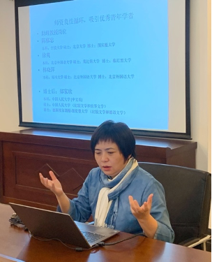 广州大学法语系的邹琰教授在题为“新文科背景下语言技能为主型课程的思政思考”的发言中,提出了修改教学大纲时的困惑。同时,她就如何把课程思政元素融合到各门课程中去,以及语言技能课程和语言知识课程该如何讲授、如何侧重等问题提出了自己的想法。