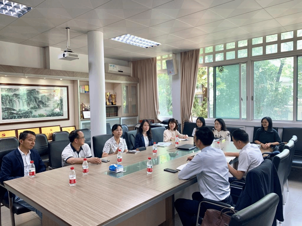 座谈会上,谢琳璘会长对德本教育投资(广东)有限公司进行了简单的介绍,并对招聘德语专业人才的需求和岗位进行了详尽的说明,西语学院党委书记敖湘晖和副书记陈华荣就充分发挥校友就业资源、实习岗位推荐、深化校企合作等进行了深入的沟通。