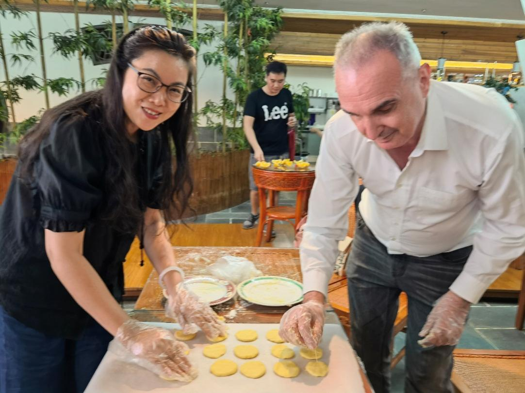 捷克语外教正在与老师们共同制作曲奇