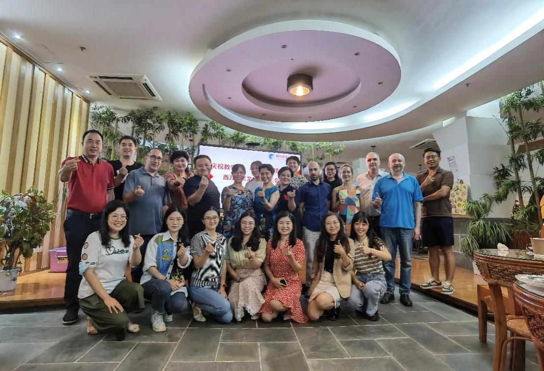 浓情中秋月,献礼教师节。2022年9月8日下午,西语学院组织教师们在图书馆负一层云山小站开展了庆祝教师节、中秋节团建活动。50余名西语学院教师,包括7名外教,参与了此次活动。大家一起品尝咖啡,亲自动手制作曲奇,在欢声笑语中庆祝即将到来的教师节与中秋节。
