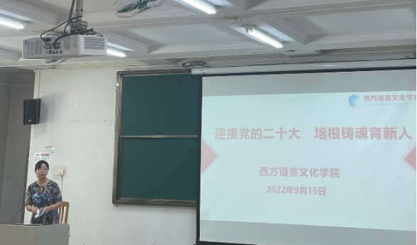 2022年9月15日下午,西语学院在二教116教室举办了主题为“迎接党的二十大,培根铸魂育新人”的全院教职工大会。会议由西语学院党委书记敖湘晖主持。