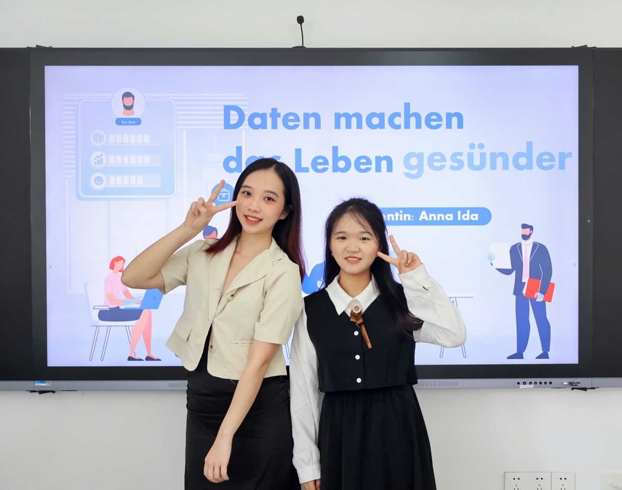 德语系二位同学在黄羽欢老师、卢铭君老师、外教Ingo Koester和Katharina Eberle老师的悉心指导下,以“Daten machen das Leben gesünder”为题录制了参赛视频,通过线上海选的方式参加比赛,最终在激烈的海选赛中取得优异成绩。
