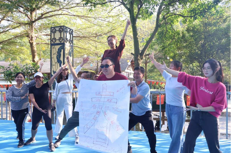 24日13:30,老师们准时集合,坐上大巴车,来到了白云山脚下的帽林营地。团建活动在轻松愉快的热身活动中拉开序幕。在趣味数学互动环节中,大家争先恐后,积极抢答,气氛热烈。同事们相互摸头鼓励,按摩肩膀,舒活筋骨。笑容在绽放,温度在上升,心与心的距离在慢慢靠近。