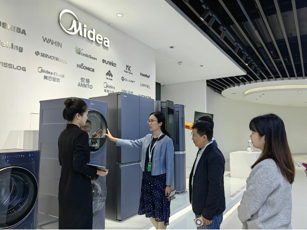 公司代表引领大家参观公司展厅,详细介绍美的企业发展历程、公司概况、发展前景、企业核心竞争力以及招聘需求等。在座谈会上,西语学院向企业介绍了学院学科特色与人才培养情况;双方就人才招聘、人才培养、实习岗位设置、就业技能培训等内容进行了友好交谈。
