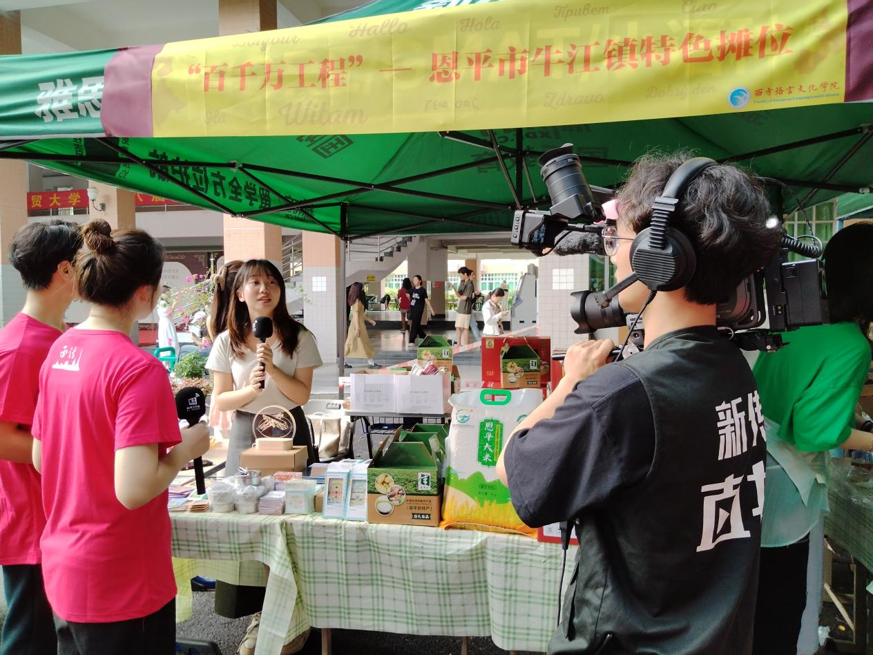“百千万工程”结对单位——江门恩平市牛江镇特色摊位。牛江镇是中国航空之父冯如的故里,也是恩平市著名侨乡。本次文化节活动中他们充分展示了航空文化的重要内涵、宣传了华侨文化的独特魅力,展现了我国乡村建设精神风貌,同时盛情邀请西语学院学子5月份前往牛江镇参加“拉美文化节”。