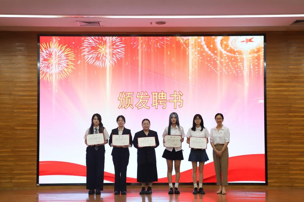 党委副书记魏少娟老师为第十七届团委委员、第二十八届学生会委员颁发聘书,感谢他们一年来的辛苦工作。
