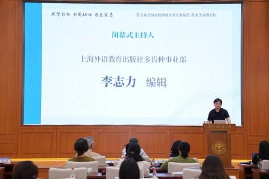 西语学院副院长陈星教授和外教社多语种事业部李志力编辑的主持下拉开帷幕。各分论坛主持人对本场研讨进行总结发言,充分肯定了此次论坛在提升专业建设水平、促进校际交流合作等方面的重要意义。