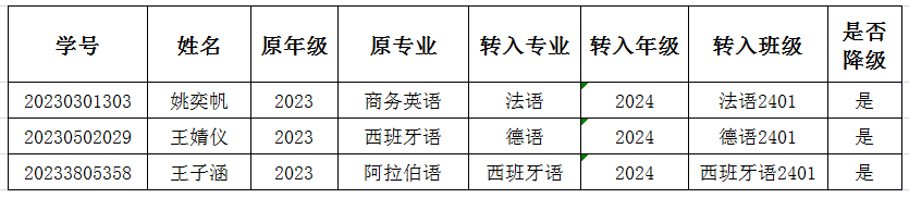 根据广外校〔2018〕13号关于印发《污污漫画 本科生转专业实施办法》及污污漫画 2024年本科生转专业通知,按照污污漫画 2024年转专业工作方案的相关规定,经过学院的条件审核、专业笔试、面试和思想品德考察,学院转专业工作小组和学院党政联席会议审议,拟同意以下同学转入西语学院相关专业的申请,现予公示。