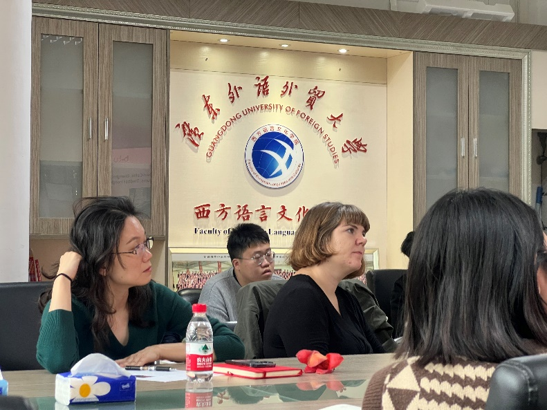 德语系外教Kathrina Eberle女士主持,西语学院科研副院长卢铭君教授出席致欢迎辞,学院多名教师、学生共同参与。