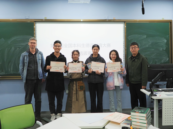 本网讯 3月7日下午,第六届全国本科生德语配音大赛广外选拔赛于一教南楼207多功能教室顺利举办。共计有十二支队伍报名参与并展开角逐,德语系主任吴晓钢、德语系外教Ingo出席并担任评委。