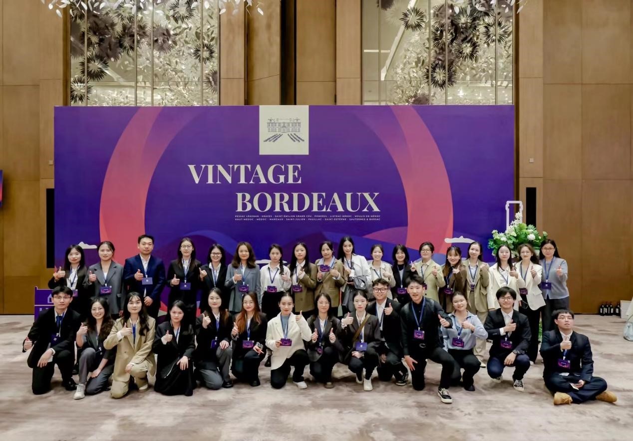 2024年11月25日,“2021年份波尔多明星酒庄品鉴会”在广州瑰丽酒店隆重举行。此次品鉴会汇集了66家波尔多酒庄,展现了法国波尔多地区卓越的酿酒技艺和葡萄酒品质。西语学院法语系师生受邀为此次品鉴会提供了专业的口译服务。