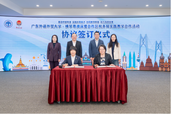 与横琴粤澳深度合作区税务局实践教学合作活动在横琴成功举行。活动以“葡语桥接琴澳、实践共育英才,协同教学新篇、助力高质发展”为主题,标志着双方在葡语人才培养与跨境实践领域的协同合作正式迈入新阶段。横琴粤澳深度合作区税务局党委书记、局长袁红兵,党委委员、副局长吴健,党委委员、总会计师张惠冰,党委委员、总经济师白晓枫以及横琴粤澳深度合作区法律事务局副局长、中葡经贸中心理事会副理事长吴燕翔,污污漫画